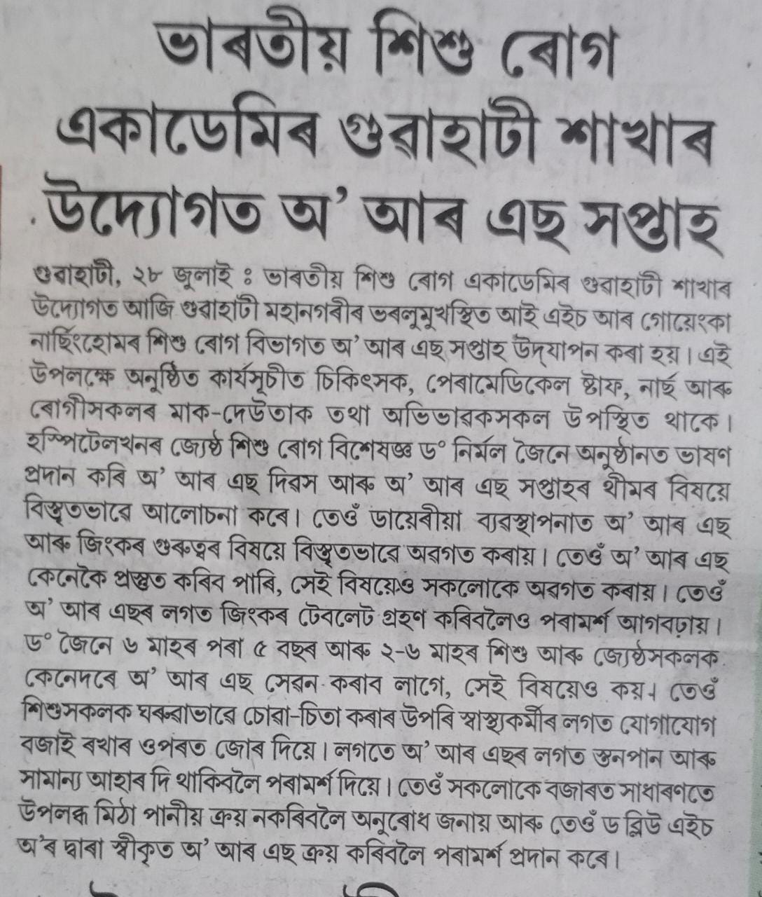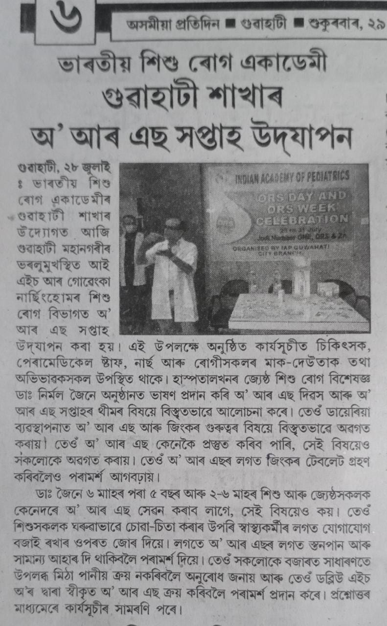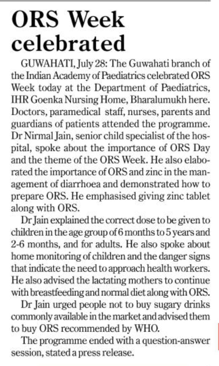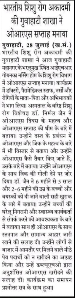 ORS Day & ORS Week celebrated in IHR, published on variuous Newspapers, on 28 July, 2022