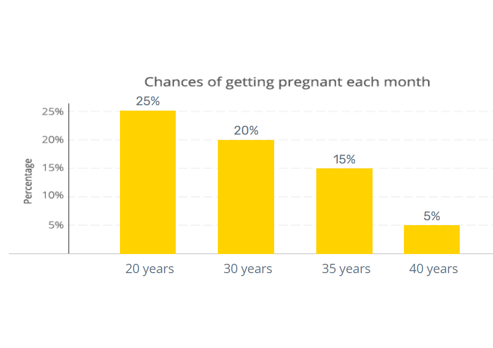 A woman’s age can have a big effect on her ability to have a baby, especially as she enters her 30s and 40s. For a healthy woman in her 20s or early 30s, the chances of conceiving each month are 20-25%. But by the time a woman is 40 years old, the chances drop down to 5%.