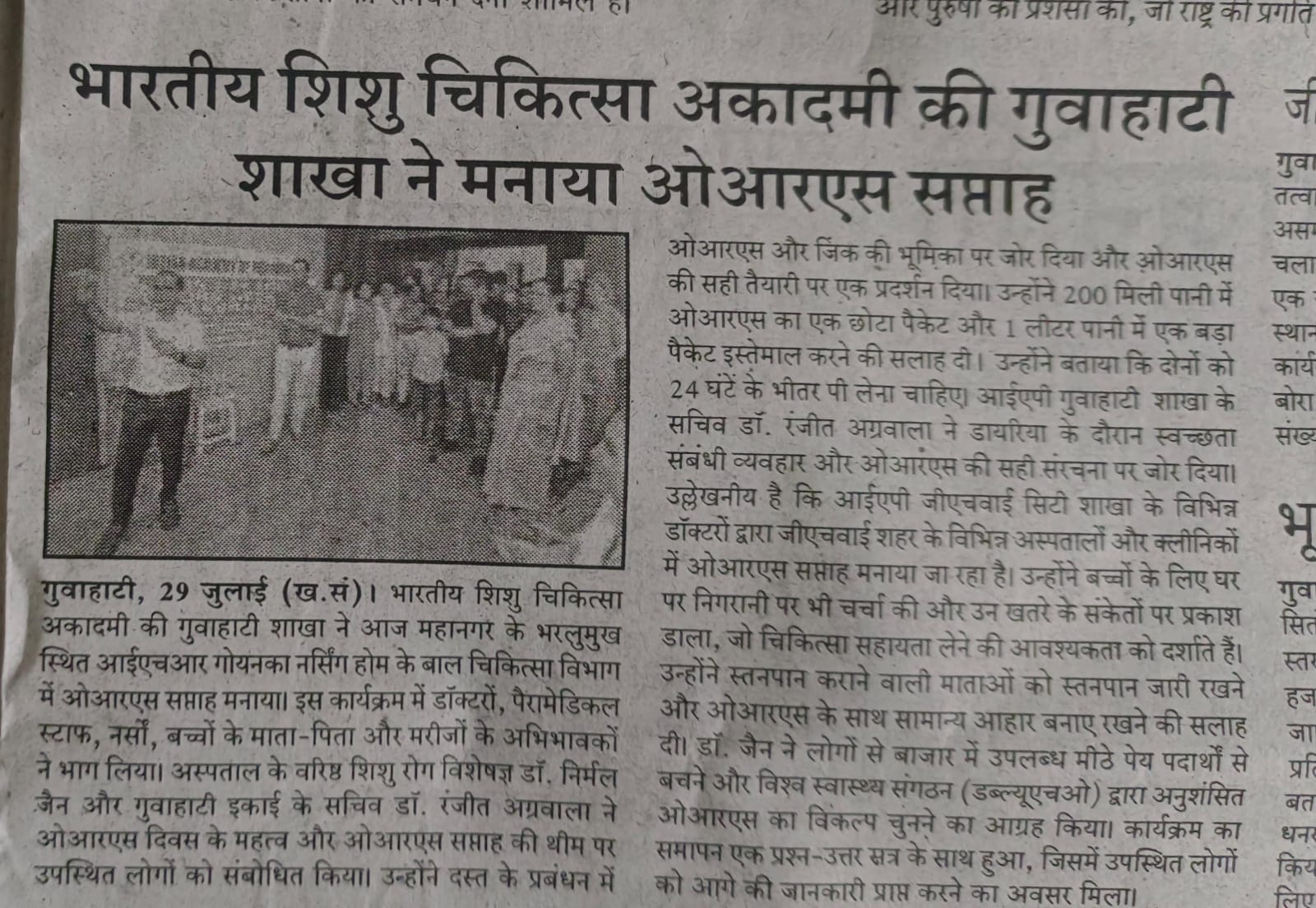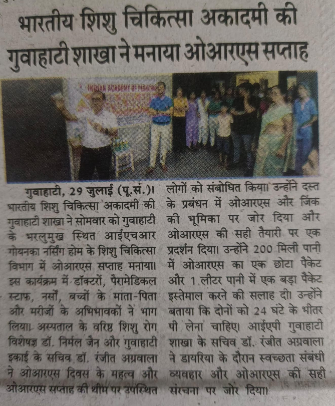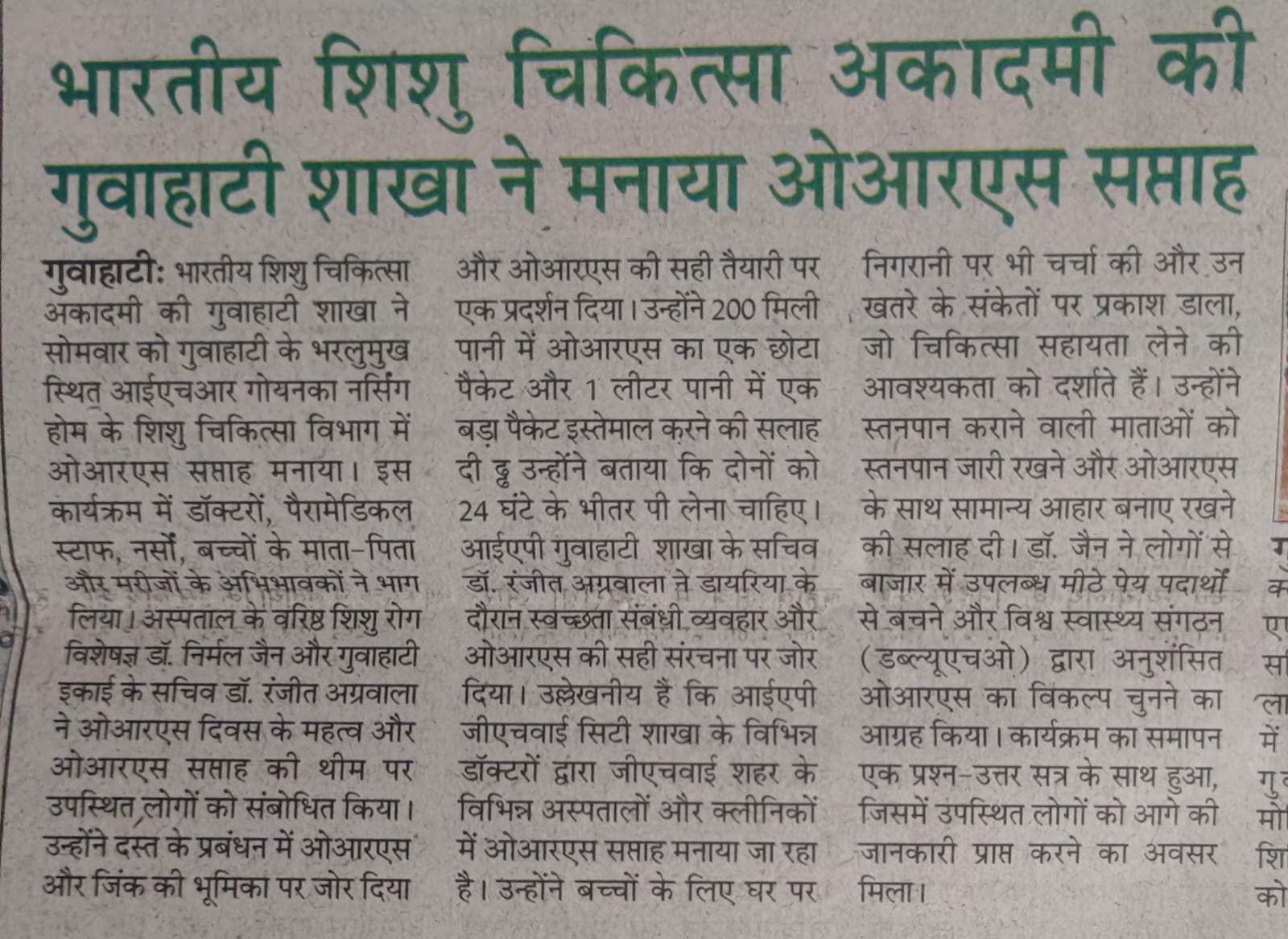 ORS Day & ORS Week celebrated in IHR, published on variuous Newspapers, on 28 July, 2022