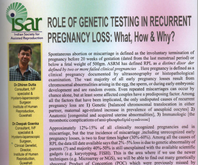 Role of Genetic Testing in Recurrent Pregnancy LOSS: What, How & Why?