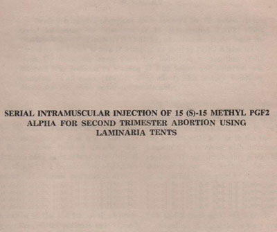 Serial Intramuscular Injection of 15 (S)-15 Methyl PGF2 Alpha for Second Trimester Abortion using Laminaria Tents