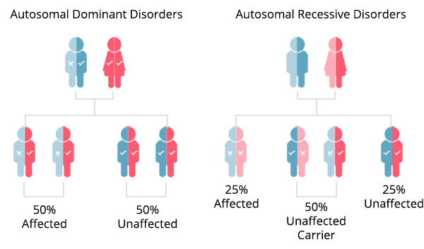 Some common Autosomal recessive, Autosomal dominant and X-linked disorders, such as :