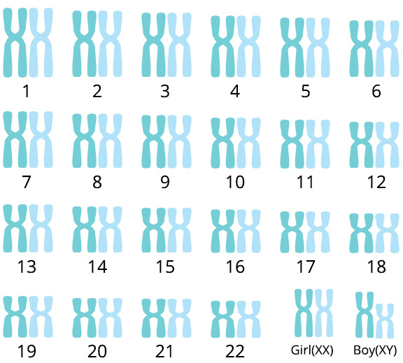 A human being has 23 chromosome pairs: 22 pairs of autosomes and one pair of sex chromosomes (XX in the case of women and XY in men).